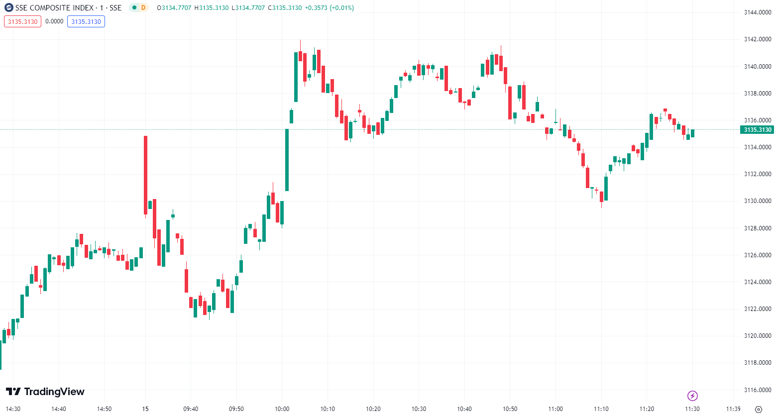 - Shanghai Composite Index (SHCOMP) fell by 0.28% to 3,135.31 points.