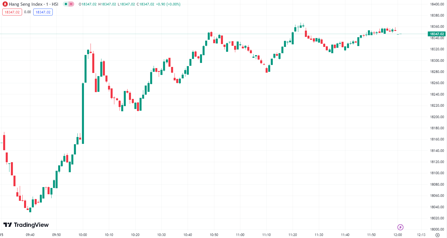 The Hang Seng Index opened 106 points higher at 18,154 points, briefly dipping 17 points to 18,030 points during the day.