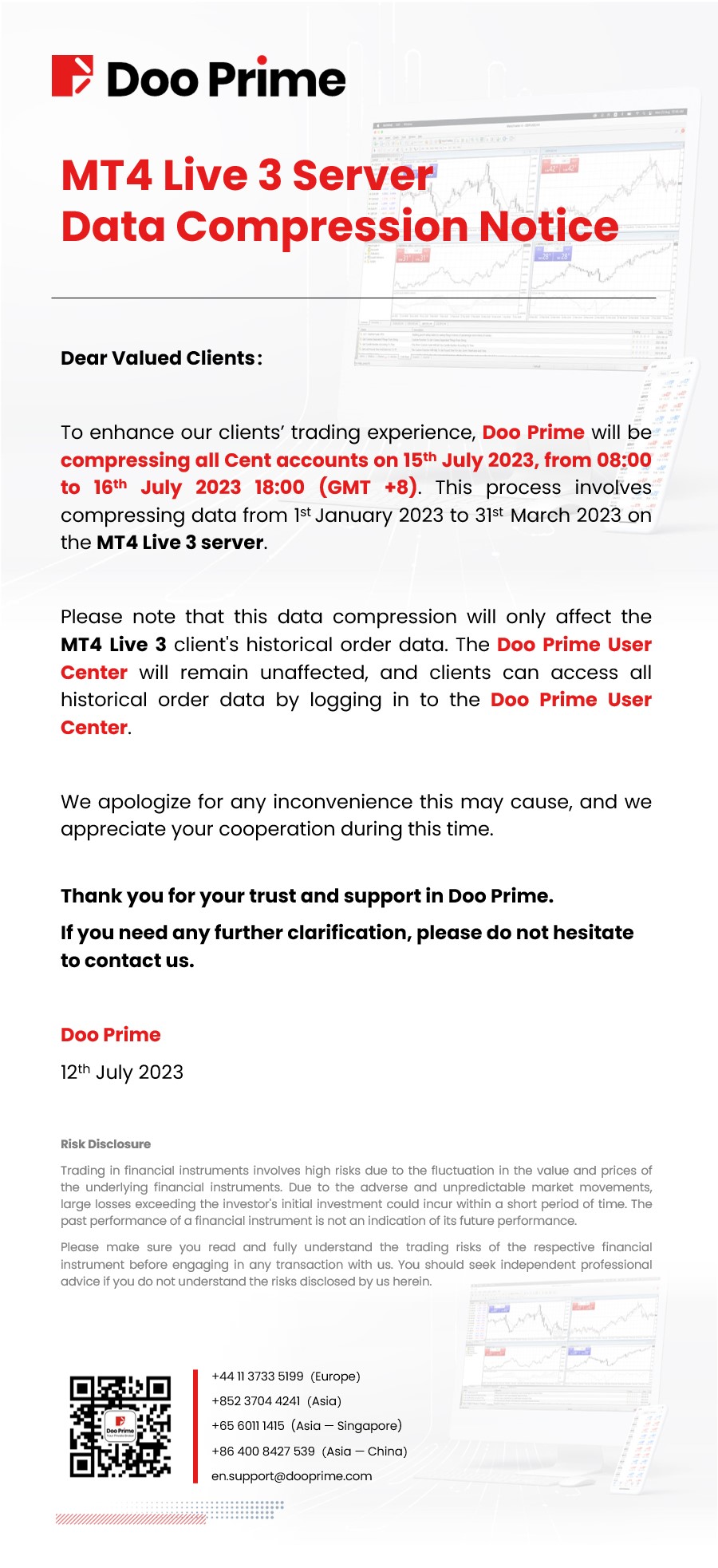 Doo Prime MT4 Live 3 Server Data Compression Notice