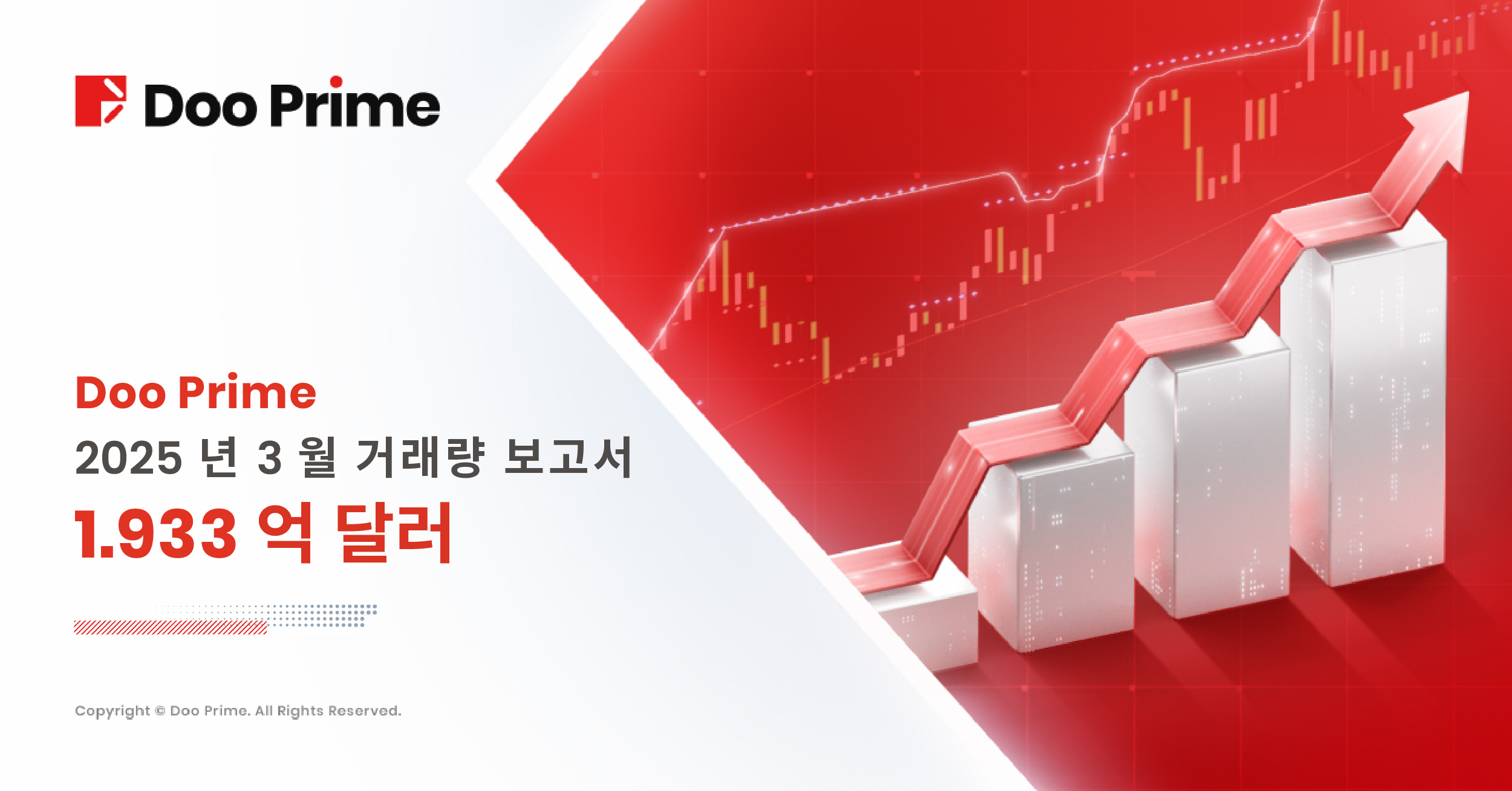 보고서에 따르면, Doo Prime의 2025년 3월 총 거래량은 약 1,933억 달러로, 전월 대비 44.14% 대폭 증가했습니다. 이와 함께, 3월 일일 평균 거래량(ADV)은 62.35억 달러로, 2월 대비 30.19% 상승했습니다.
