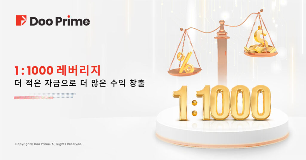 Doo Prime에서 최대 1000배의 레버리지를 이용하여 잠재적 이윤을 창출하세요.