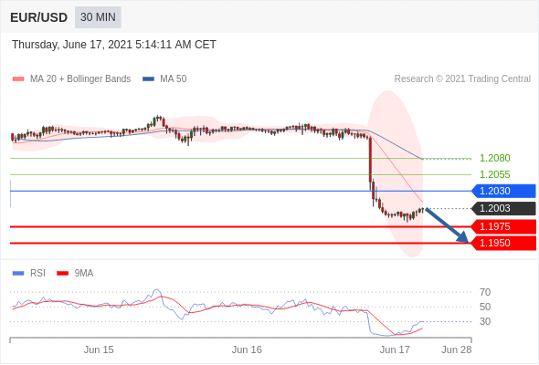 As long as the resistance at 1.2030 is not surpassed, the risk of the break below 1.1975 remains high.