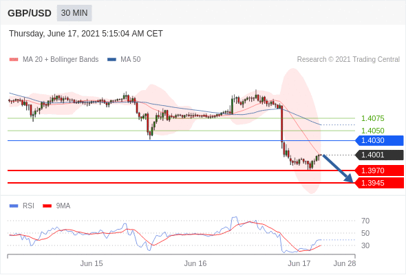 Short positions below 1.4030 with targets at 1.3970 & 1.3945 in extension.