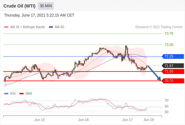 Short positions below 72.25 with targets at 71.30 & 70.70 in extension.
