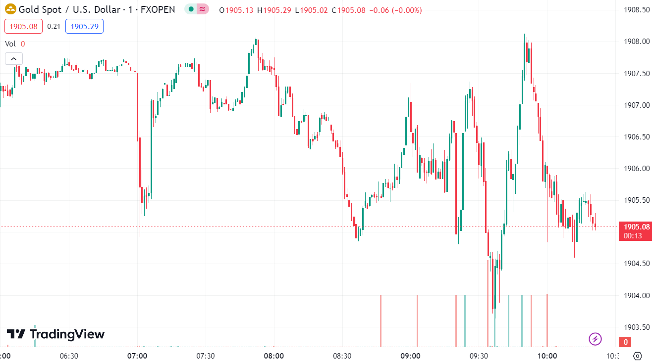 Gold continues its recent pattern of suppressed bearish momentum. During the Asian and European sessions, prices slightly rebounded to around the $1915 level before entering a sideways consolidation.