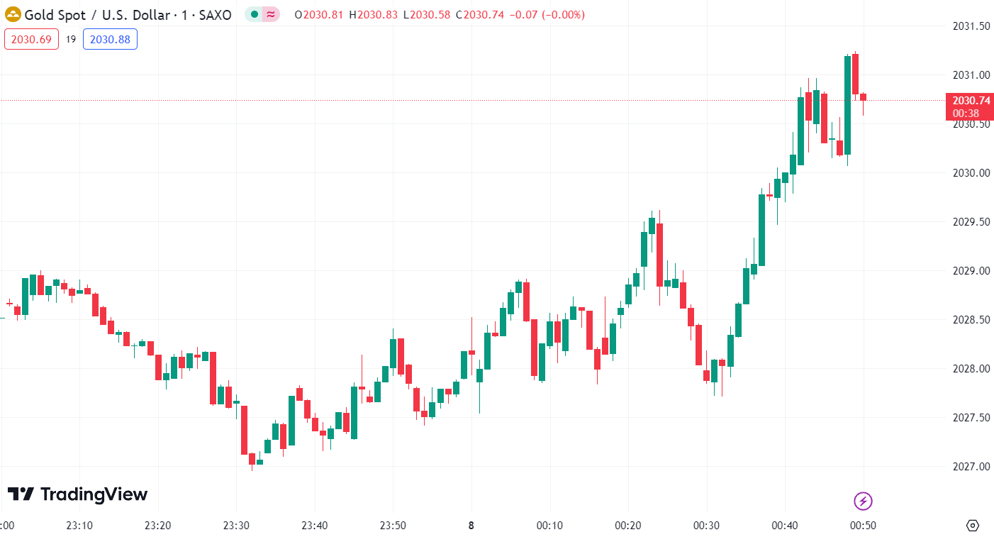 On Thursday, gold futures closed down 0.07%, at USD 2046.4 per ounce. Spot gold closed at USD 2028.49 per ounce, registering a slight increase of USD 3.19 or 0.16%. The intraday high reached USD 2039.94 per ounce, while the low touched USD 2020.15 per ounce.
