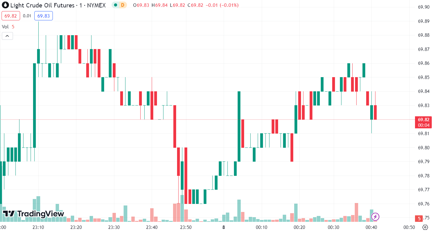 However, they failed to rise above the vicinity of USD 74, ultimately falling back to around USD 70. In the Asian session, there was a slight uptick in the opening; during the European session, oil prices extended gains but did not sustain the bullish momentum seen in multiple previous declines.