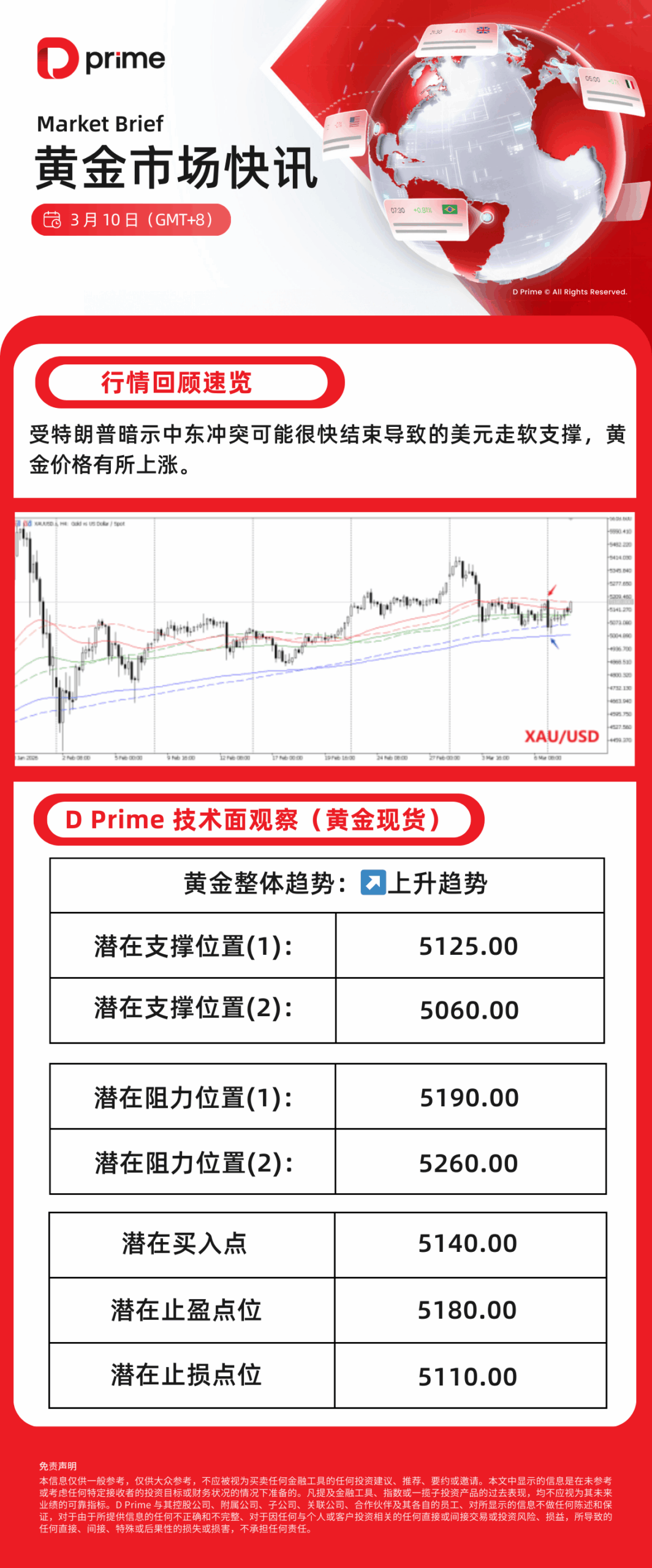 D Prime 黄金市场快讯 | 2026 年 3 月 10 日