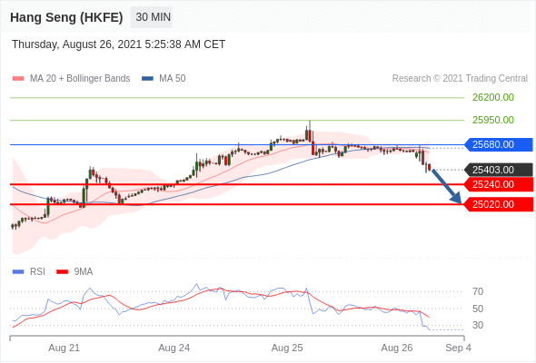 在 25680.00 之下,看跌,目标价位为 25240.00 ,然后为 25020.00 。