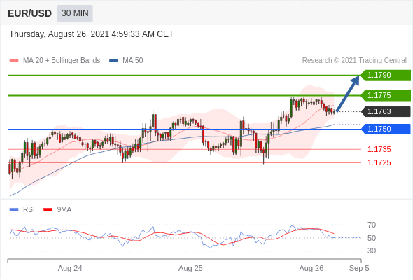 在 1.1750 之上,看涨,目标价位为 1.1775 ,然后为 1.1790 。