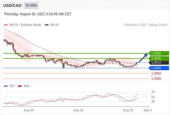 在 1.2580 之上,看涨,目标价位为 1.2635 ,然后为 1.2665 。