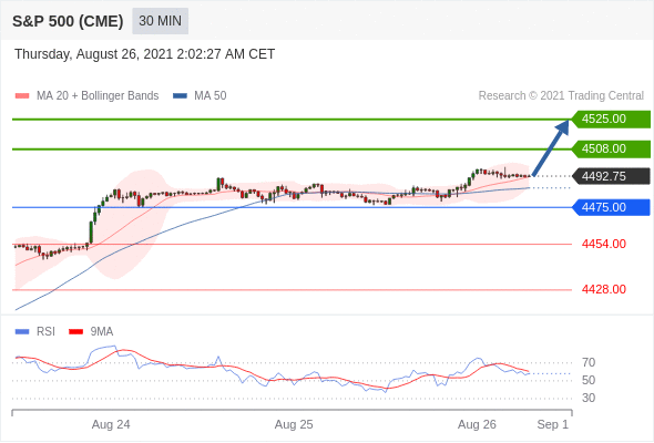 在 4475.00 之上,看涨,目标价位为 4508.00 ,然后为 4525.00 。