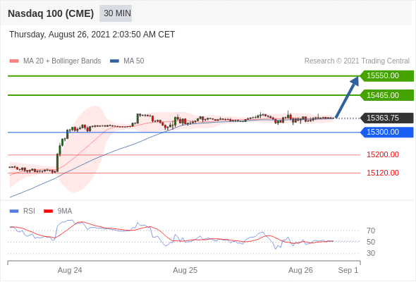 在 15300.00 之上,看涨,目标价位为 15465.00 ,然后为 15550.00 。