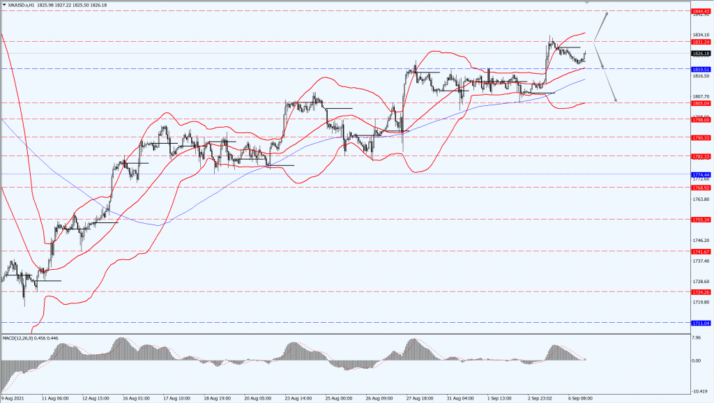 黄金依旧今日关注 1831 一线,如果金价刺破 1831 或始终稳定运行于 1831 一线下方,则下方关注 1819 和 1805 两个位置的支撑力度;如果金价力度上破 1831 ,则将打开进一步的上行空间,届时关注1844一线。