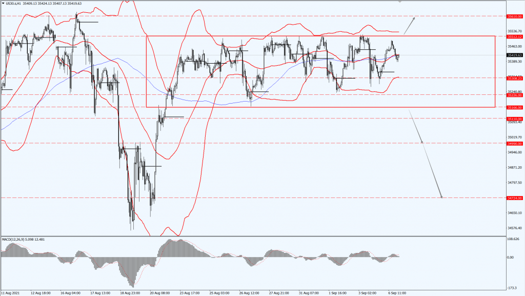 道指今日依旧关注扩大后的震荡区间的突破方向,向下跌破 35166 一线,则将打开进一步的下行空间,届时关注 34990 一线的支撑力度;如果向上突破 35512 ,则将打开进一步的上行空间,届时关注 35610 一线的压制力度。