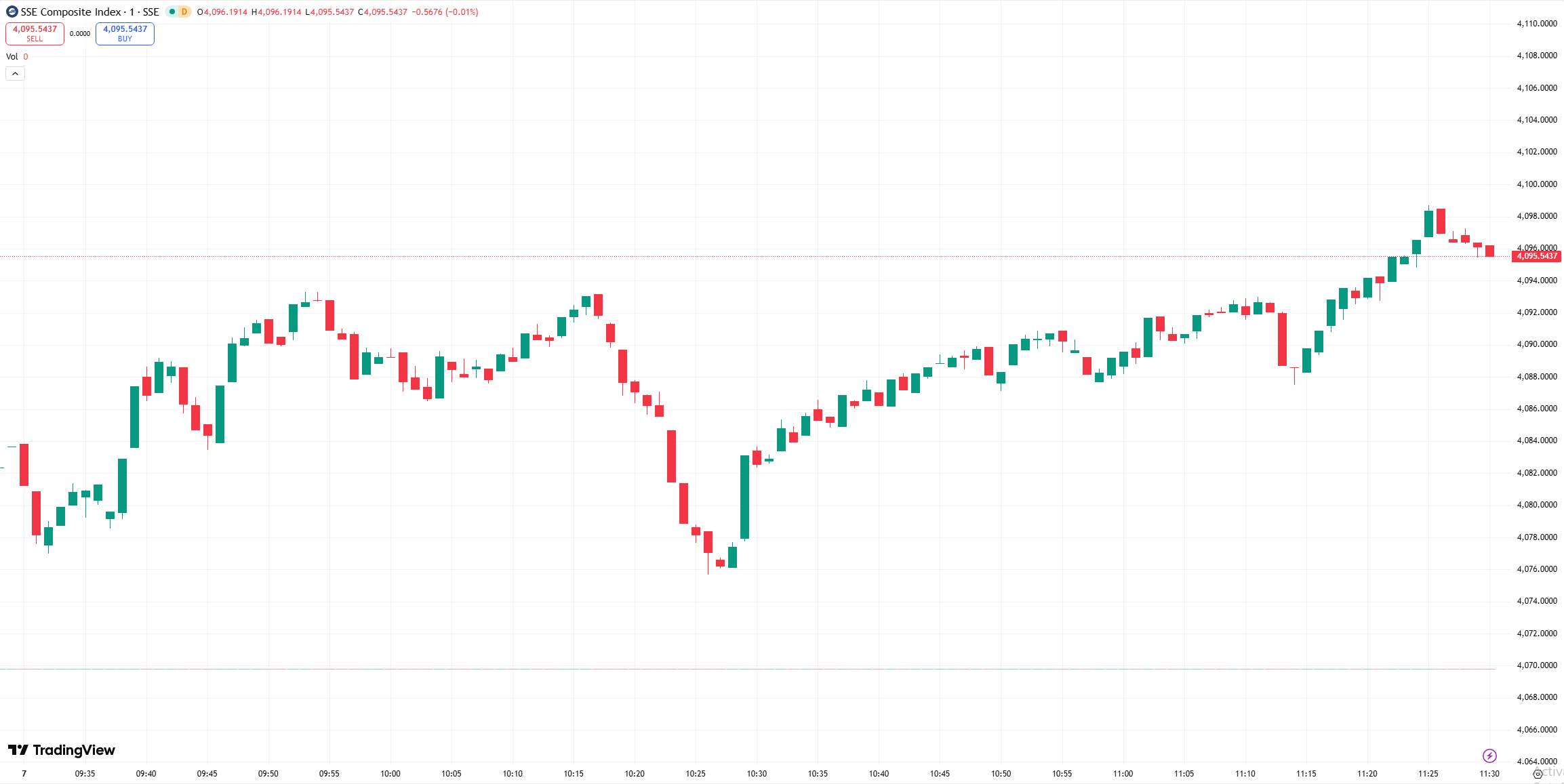 - 沪指涨 0.29%,报 4095.54 点