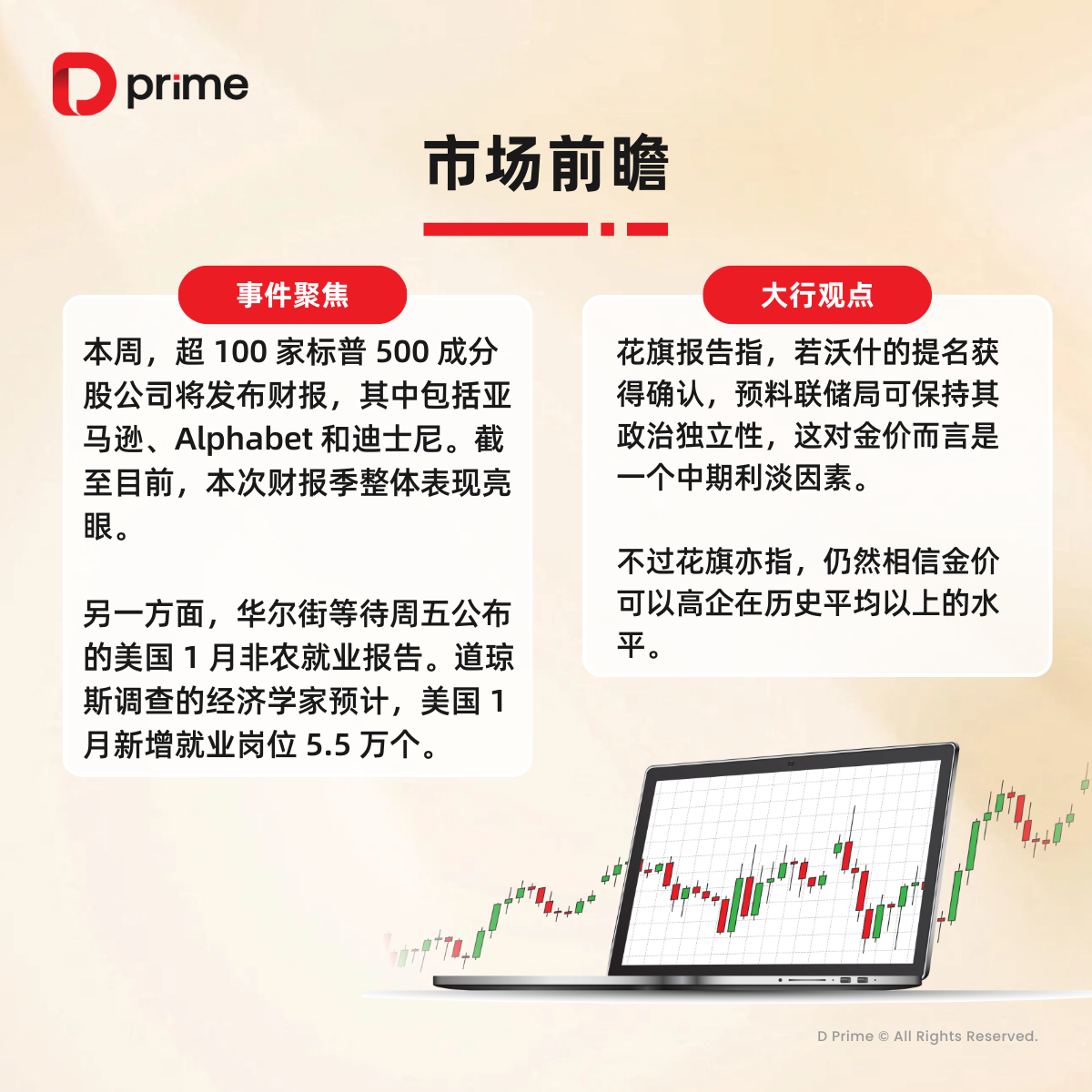 精选研报 | 上周五,特朗普宣布拟提名凯文沃什出任下一任美联储主席,黄金创 40 年来最大单日跌幅,白银暴跌超三成。本周,超 100 家标普 500 成分股公司将发布财报,另一方面,周五将公布美国 1 月非农就业报告。还有哪些大事值得关注?下方图片速览: