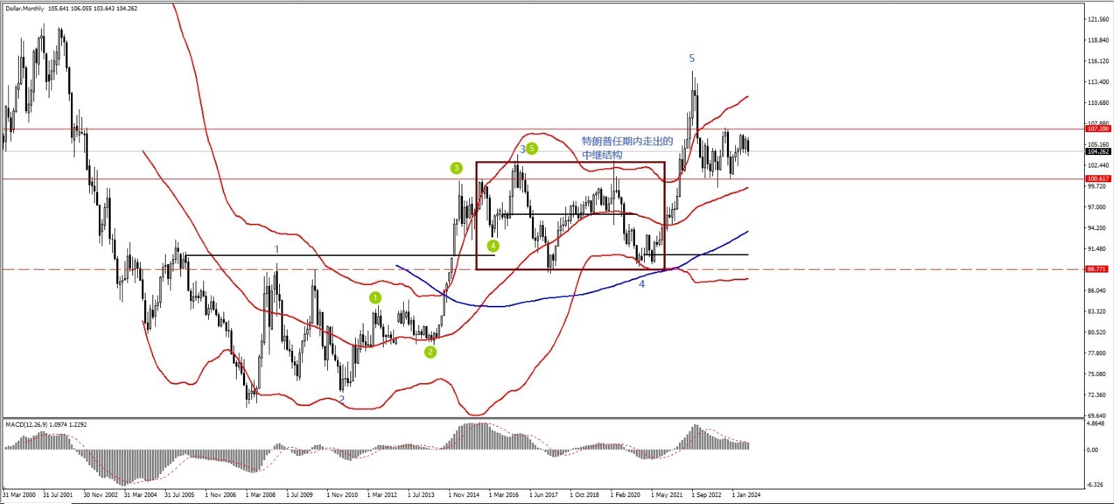 在美联储加息预期的催化之下,2016 年下半年美元逐步走强,特朗普上台之后,美指高开低走。当选之后,美指由当日的 97.87 点上涨至 12 月 28 日的高点 103.3 点,随后趋于下滑。