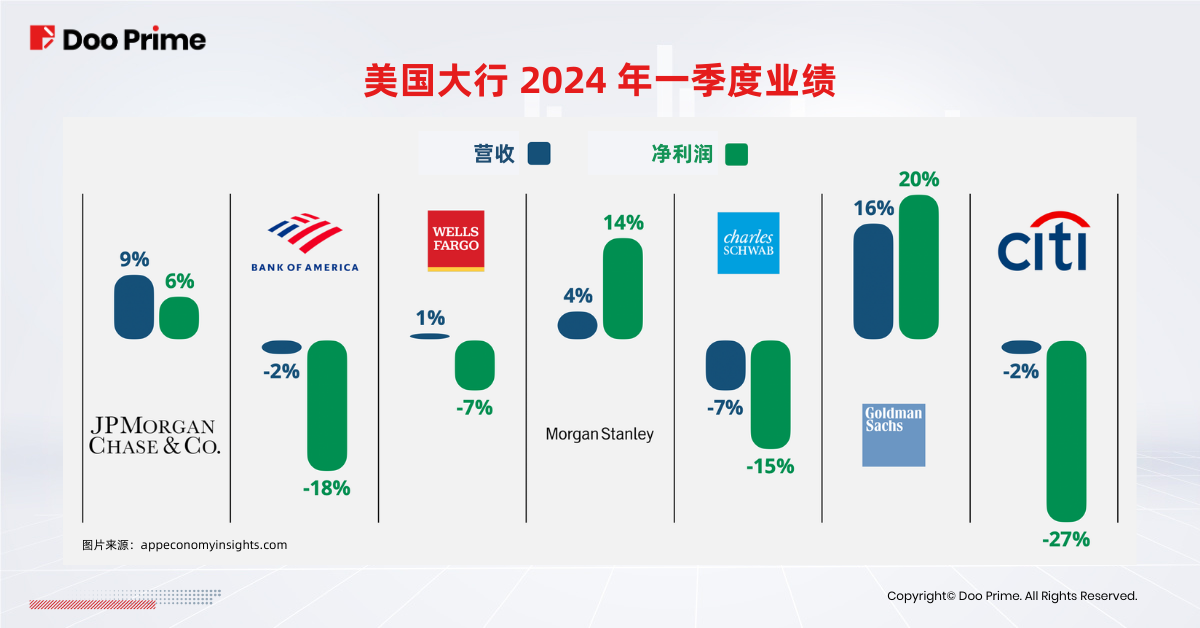 美股财报季已拉开序幕,各大银行巨头打头阵,包括美国六大行——摩根士丹利、高盛、富国、美国银行、摩根大通、花旗已相继发布其 2024 年第一季度财报。