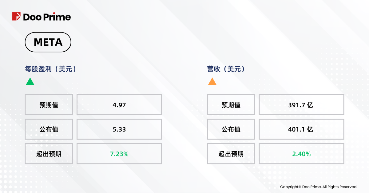 Meta 交出史上最强财报,提振其股价飙升 20%。Meta 的 2023 年第四季度营收和每股收益均超出分析师预期,其中营收同比增长 25%。此外,Meta 宣布首次发放季度股息,并将回购 500 亿美元的股票,令投资者情绪高涨。尽管 Meta 表示将持续投资元宇宙,但投资者对其盈利能力仍有保留。