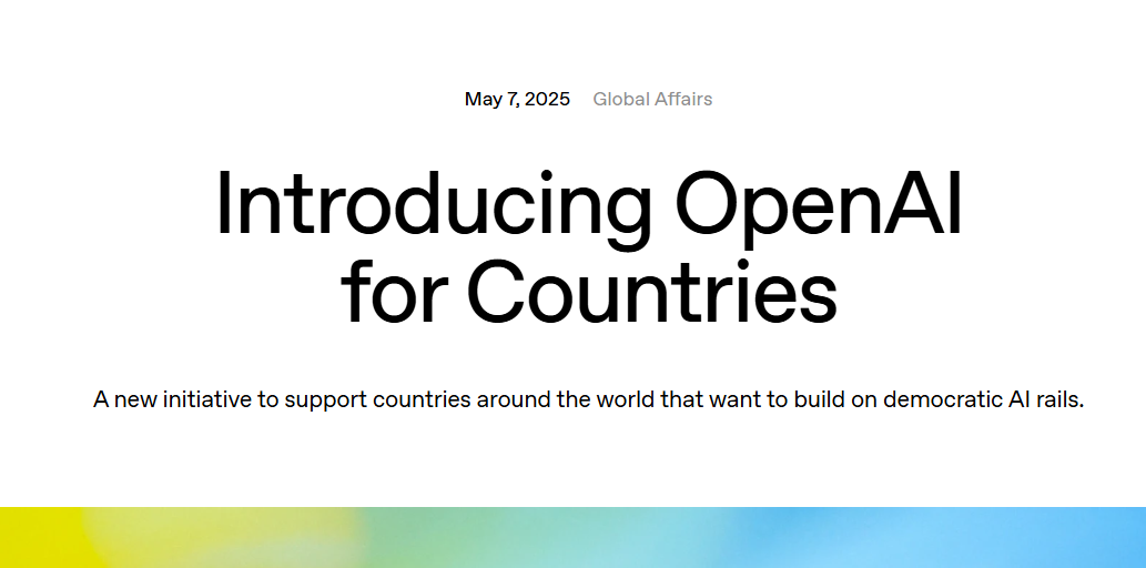 5 月 8 日凌晨,OpenAI 在官网宣布一个全新的 AI 发展计划——OpenAI for Countries。
