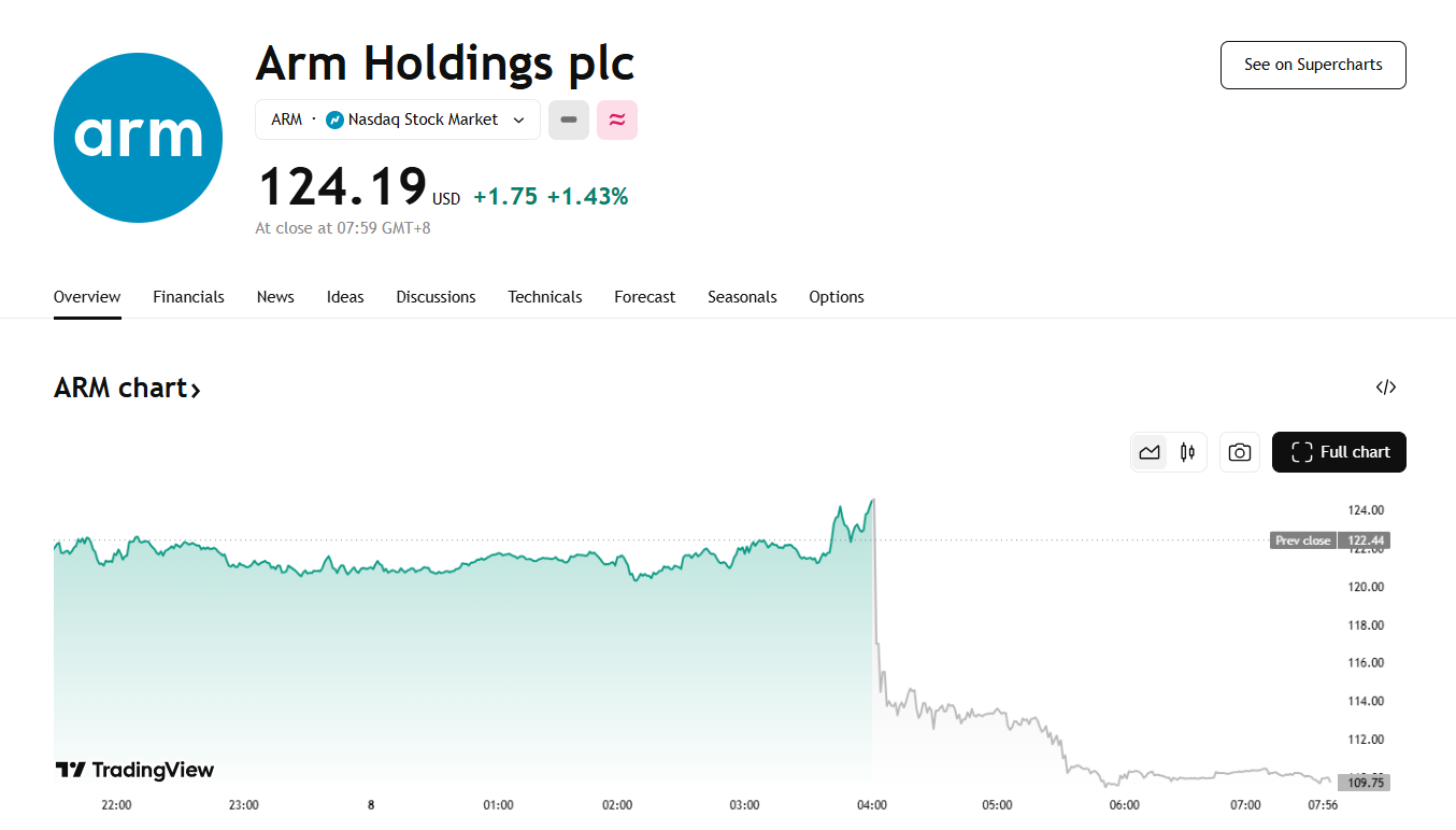 Arm 业绩指引令人失望,盘后股价跌 11%