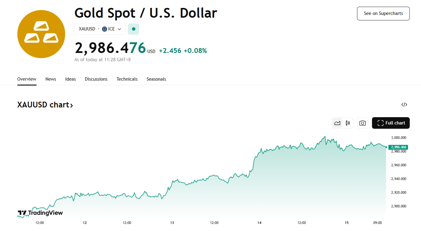 由于市场对美国经济前景的担忧日益加剧,黄金作为避险资产的需求显著增加,特别是随着特朗普政府可能实施的破坏性贸易政策引发市场不确定性,投资者纷纷转向黄金这一传统避险资产。避险资金的持续流入,以及各国央行对黄金的强劲购买需求,进一步支撑了市场的看涨预期。