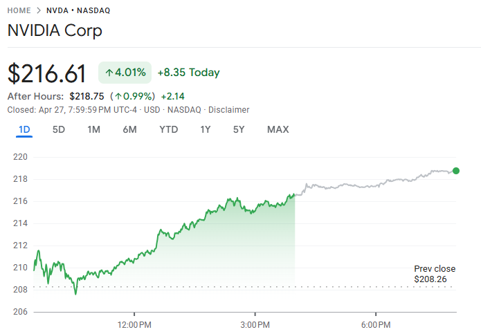 周一美股盘中,英伟达(Nvidia)股价再度攀升,涨幅达 3.4 %,成功收复 5 万亿美元市值大关。随着 2026 年第一季度财报季进入高潮,市场对人工智能硬件的需求预期依然强劲。尽管宏观环境存在波动,但英伟达凭借在数据中心和 AI 算力领域的统治力,再次证明了其作为美股“领头羊”的地位。