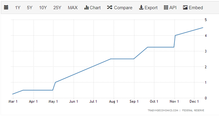 为了将通胀率拉低至 2% 的目标,美联储已经在去年多次激进加息。虽然在多次加息之后,当前通胀率已经有所下滑,但远没有触及美联储 2% 的目标,美联储也多次在公开场合强调,“不要低估美联储打压通胀的决心”。