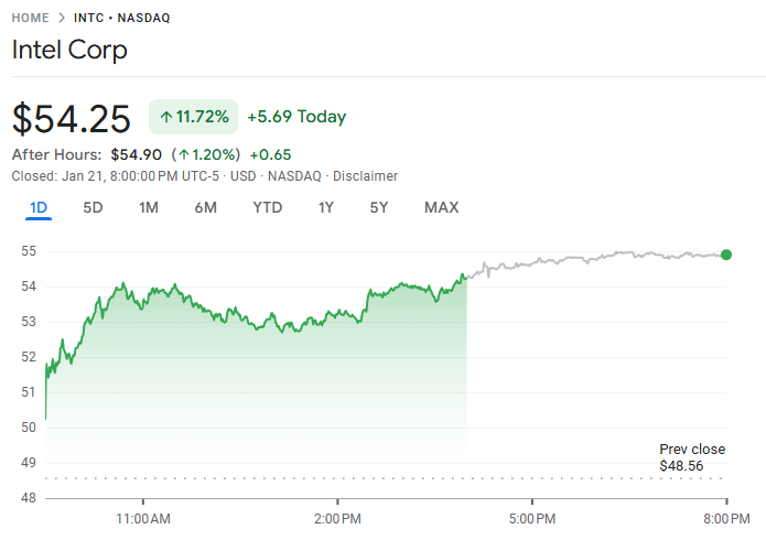 英特尔获美战争部 1510 亿美元巨额合同,股价飙升逾 11%