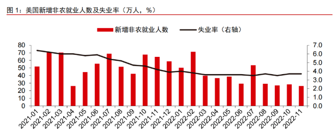 总体来说,美国 11 月就业报告显示劳动力市场仍将相当强劲。虽然大多数其他经济指标都在指向衰退,但非农就业报告浇灭了市场对美联储将因经济足够疲软而降低紧缩力度的期望,因此美联储仍有可能再累计加息 100 个基点。话虽如此,科技行业裁员数量有所增加,初请失业金人数增加也表明,未来几个月就业增长趋于趋软。