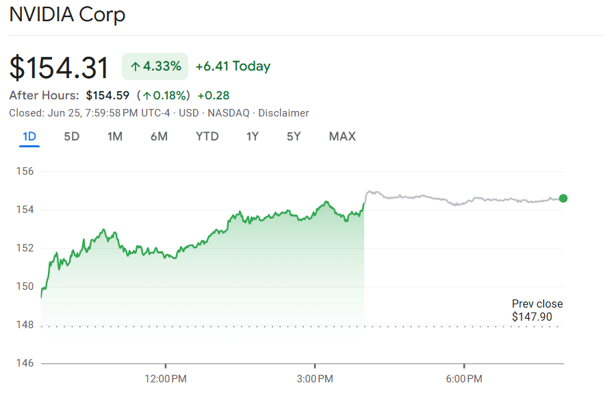 受此利好消息推动,英伟达股价周三上涨逾 4%,收于 154.31 美元,市值达到 3.77 万亿美元,稳居全球最大上市公司之列。