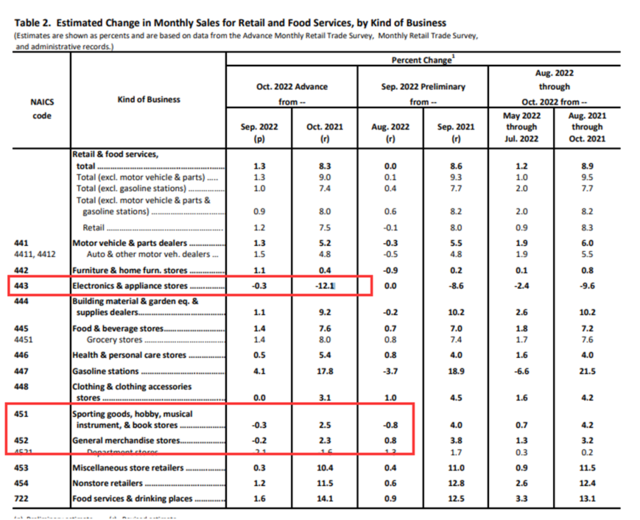 细分来看,13 个零售类别中只有 3 个类别零售下滑,电子产品和电器商店零售环比下滑了 0.3%,体育用品等环比下降 0.3%,杂货商店零售环比下降了 0.2%。然而加油站零售环比上升了 4.1%,餐饮服务和饮酒场所零售环比上升 1.6%,汽车及零部件经销商零售环比上升 1.3%,家具店、建材等部门零售也出现不同程度的增长。