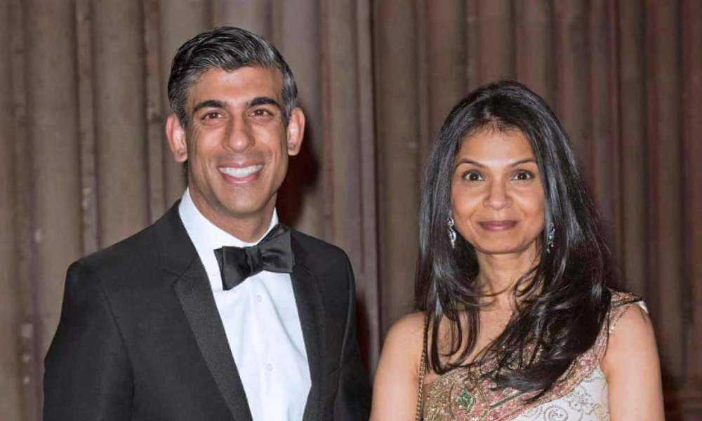 在斯坦福大学求学期间,他结识了妻子阿克萨塔·穆尔蒂( Akshata Murty )。穆尔蒂是印度科技巨头印孚瑟斯( Infosys )创始人之一的女儿,出身于亿万富翁的家庭。两大富裕家庭联姻,苏纳克夫妇的净资产估值约为 7.3 亿英镑(约合 60 亿元人民币),在《星期日泰晤士报》“全英富豪排行榜”上位列个人或家庭第 222 名,其资产大约是英国国王查尔斯三世夫妇的两倍。