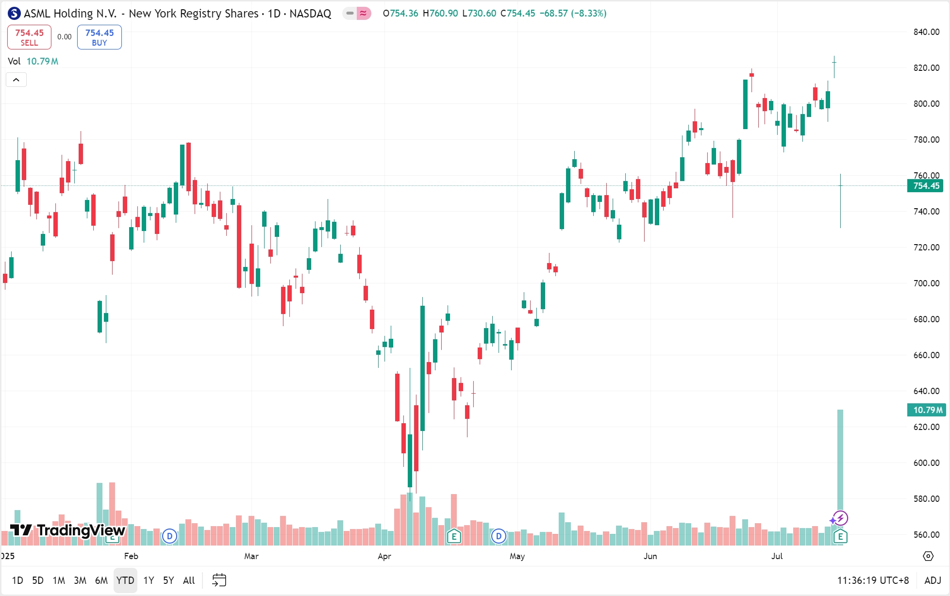 阿斯麦绩后大跌超 8%,业绩指引释放谨慎信号