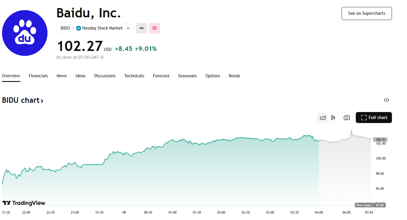 百度涨超 9%,发布文心大模型 4.5 及 X1