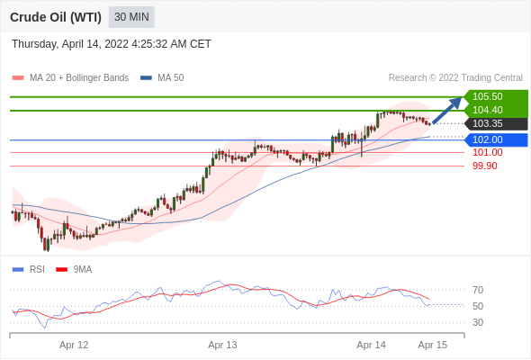 Long positions above 102.00 with targets at 104.40 & 105.50 in extension.