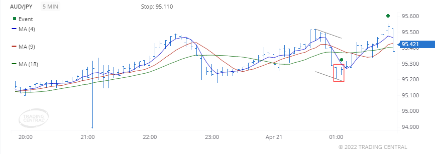 The price crossed above its moving average on 2022 Apr 22 at 00:30 GMT signaling a new uptrend has been established.