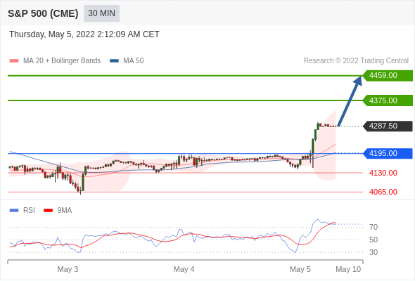 The next resistances are at 4375.00 and then at 4459.00.