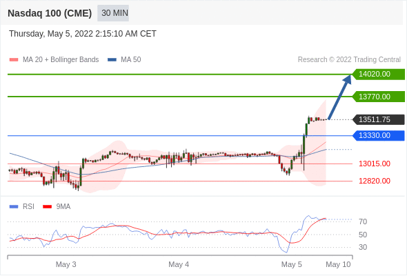 Long positions above 13330.00 with targets at 13770.00 & 14020.00 in extension.