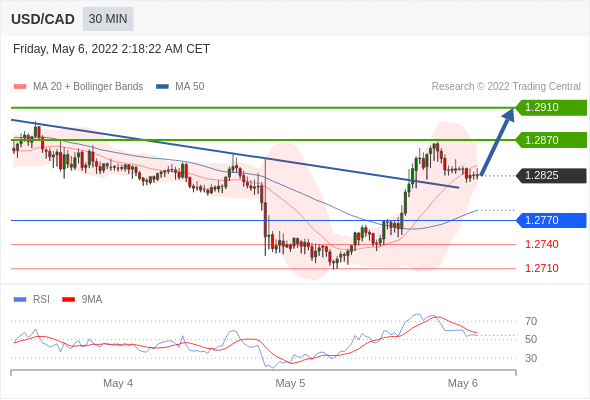 Long positions above 1.2770 with targets at 1.2870 & 1.2910 in extension.