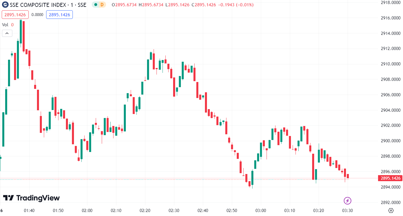 - Shanghai Composite Index (SHCOMP) fell by 0.38%, closing at 2,895.14 points.
