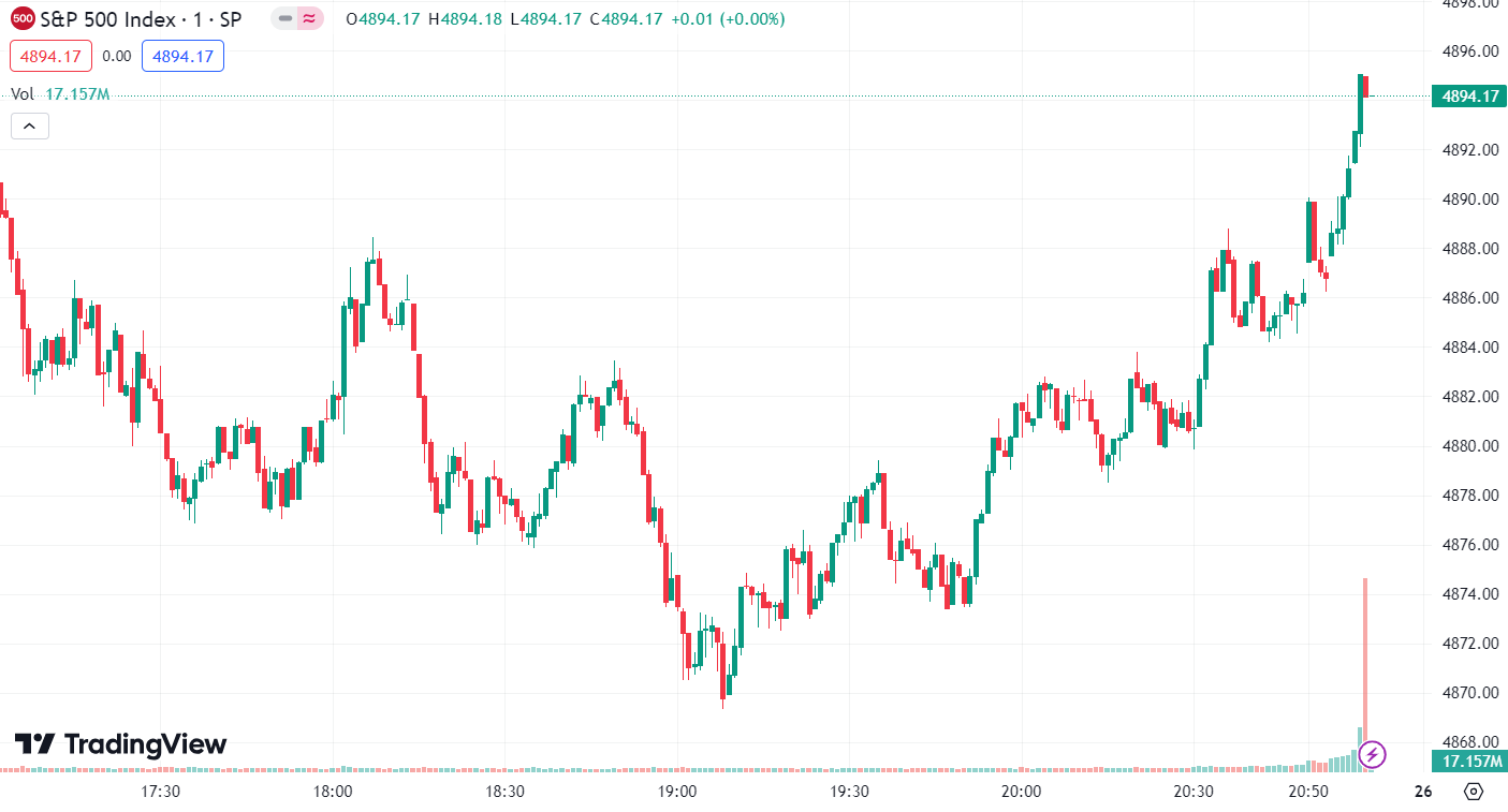 - S&P 500 Index increased by 25.61 points, up 0.53%, closing at 4,894.16 points.