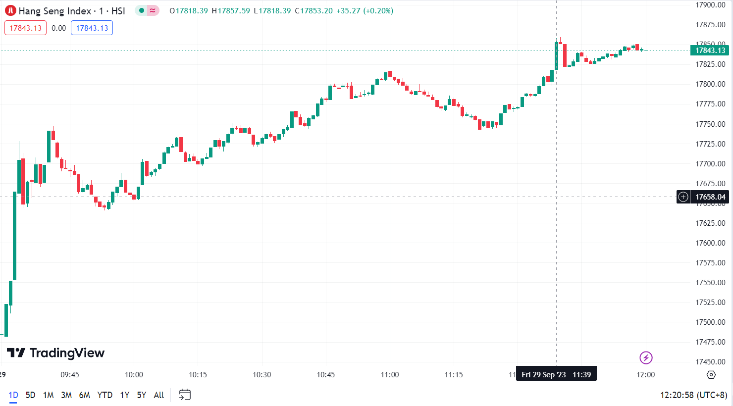 - Hang Seng Index (HSI) rose by 2.71%, closing at 17,843.13 points.