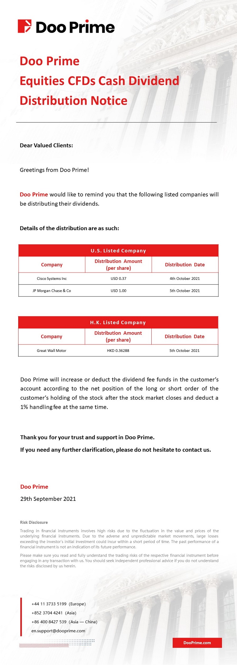 2021-09-29 | Equities CFDs Cash Dividend Distribution Notice