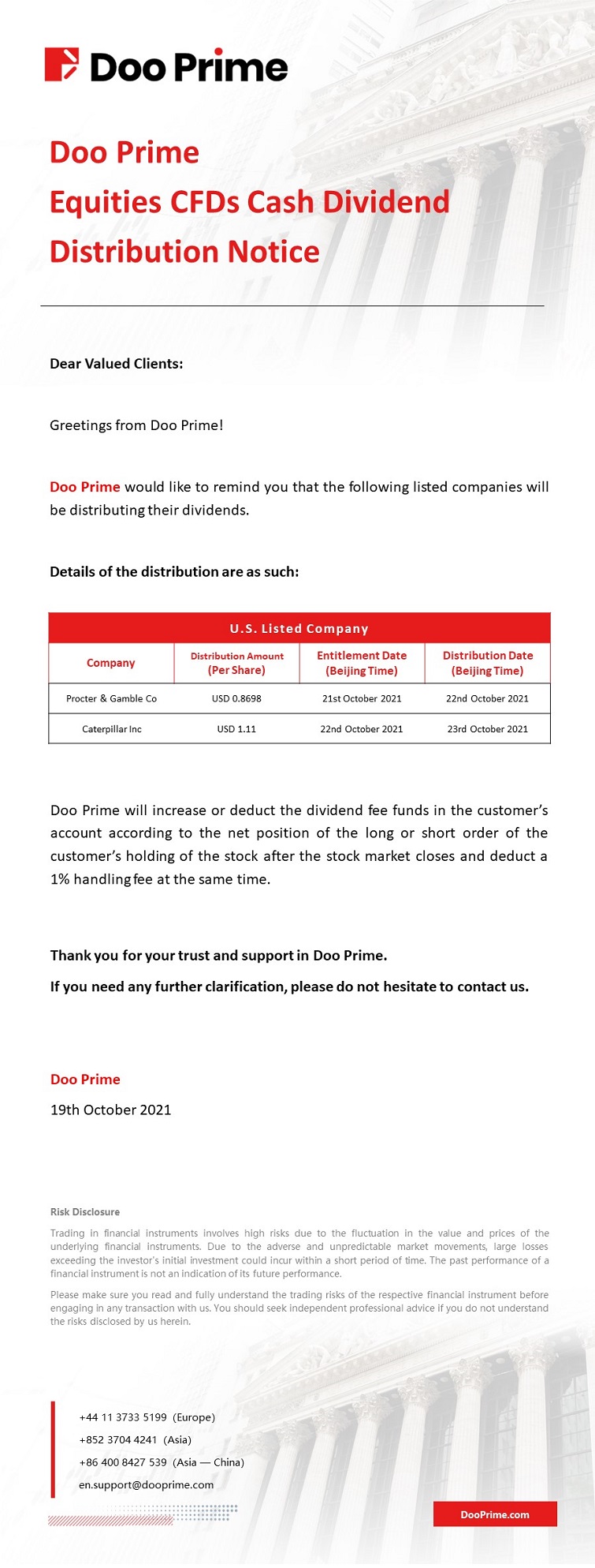 2021-10-19 | Equities CFDs Cash Dividend Distribution Notice