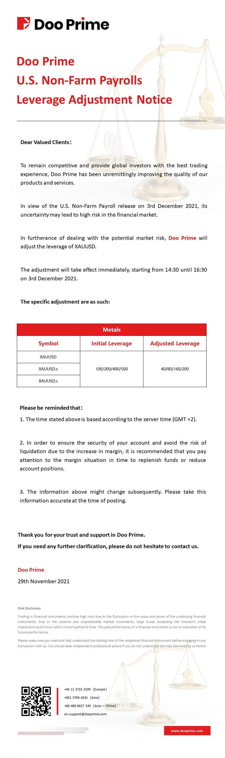 2021-11-29 | Non-Farm Payroll , US Non-Farm Payrolls Leverage Adjustment Notice
