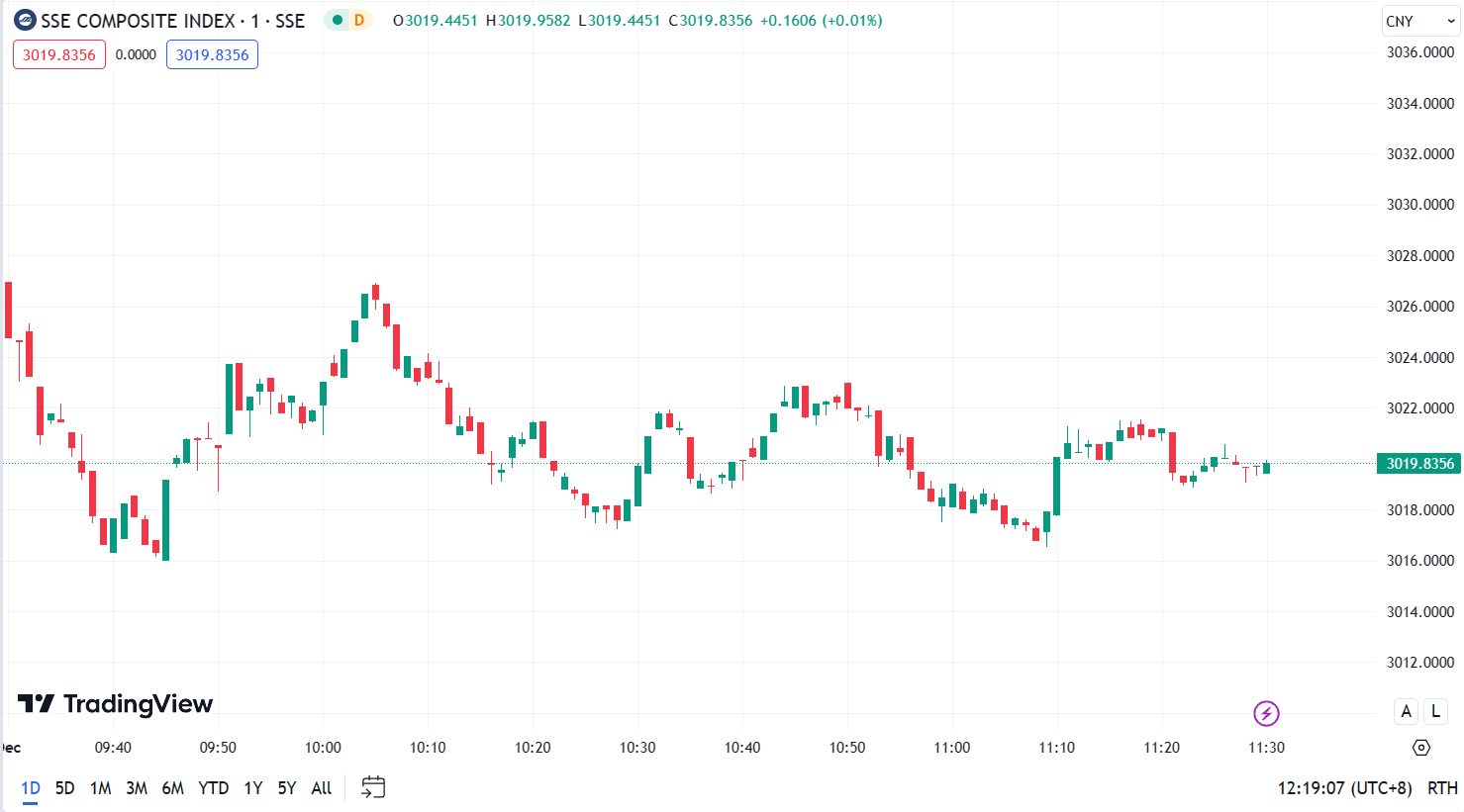- Shanghai Composite Index (SHCOMP) dropped by 0.32%, closing at 3,019.84 points.