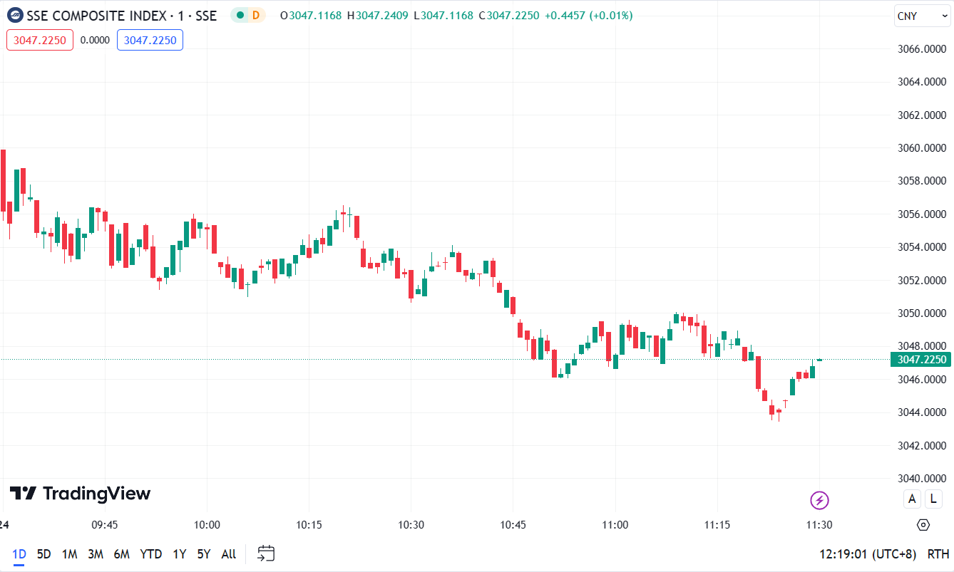 - Shanghai Composite Index (SHCOMP) down by 0.48%, closing at 3,047.23 points.