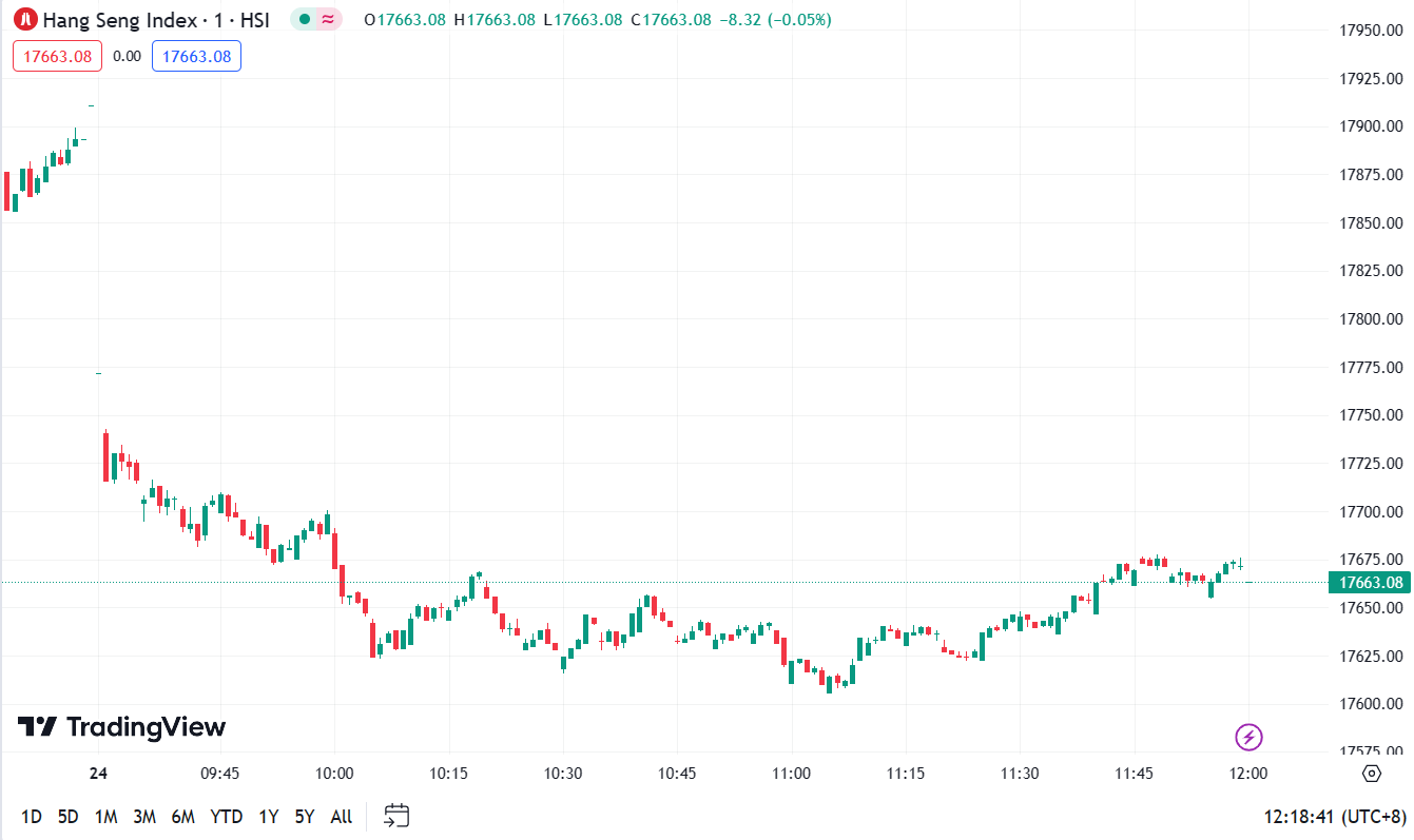 - Hang Seng Index (HSI) down by 1.38%, closing at 17,663.08 points.